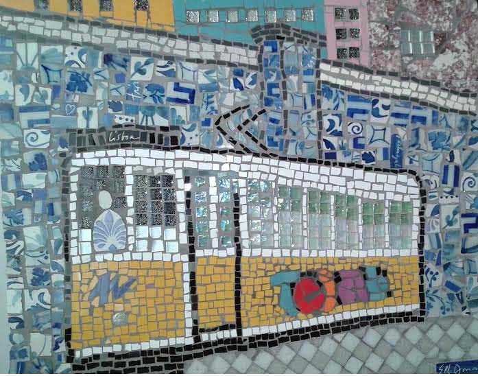 Amor em Lisboa, 80 x 80 cm, broken antique and contemporary tile, iron frame SOLD